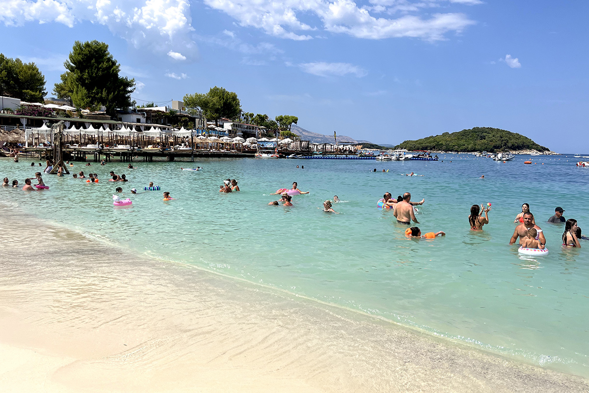 Ksamil on pieni rantakylä, joka on tunnettu upean kirkkaasta, turkoosista vedestään ja pehmeistä hiekkarannoistaan (Sarandan ranta on pientä soraa). Ja totta tosiaan, vesi oli juuri niin uskomattoman turkoosia kuin kuvissa oli nähnyt.