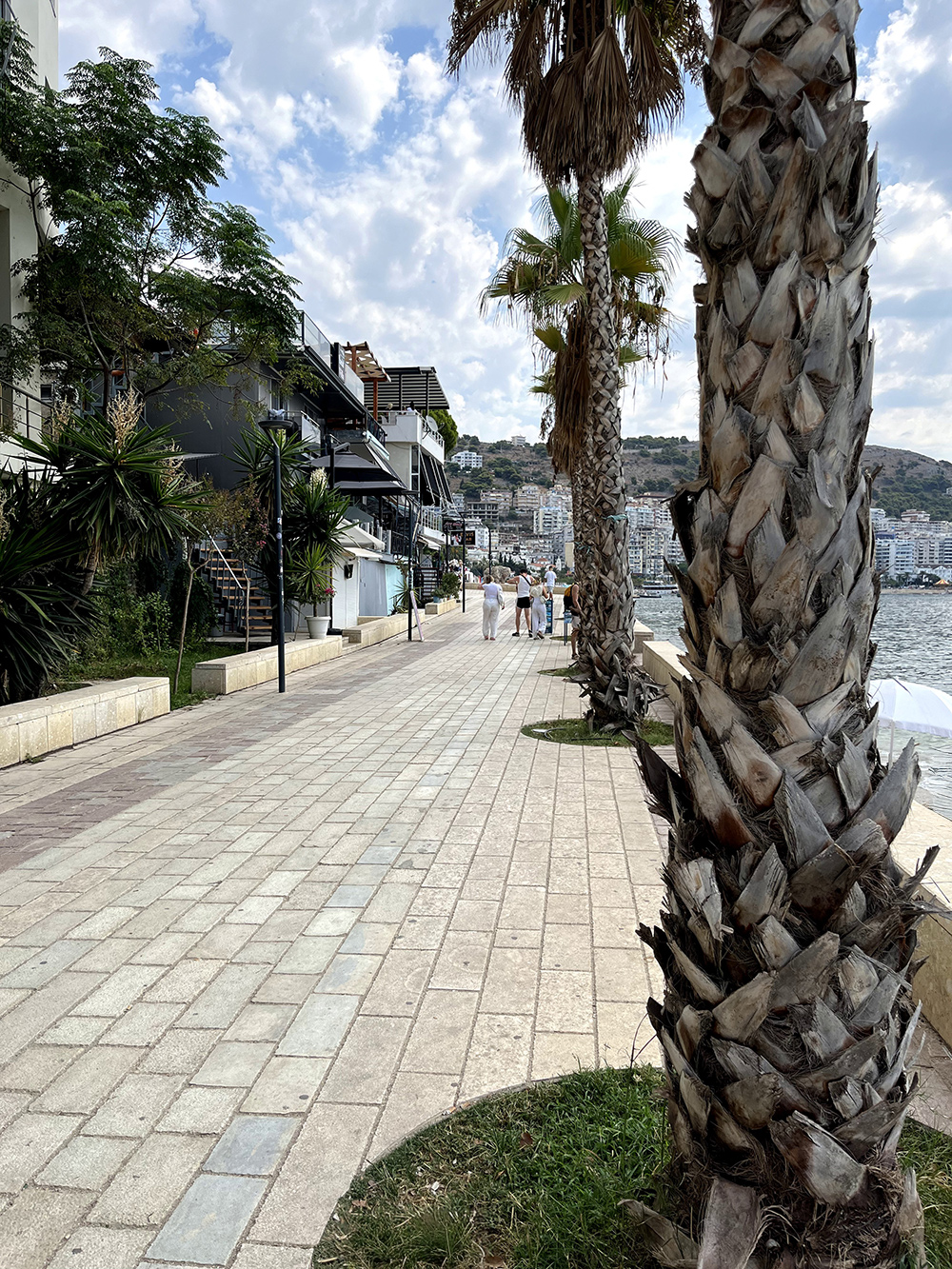 Sarandaan saapuessa ei tarvitse kuin kääntyä oikealle satamarakennuksen ulko-ovelta ja on melkein jo rantabulevardilla. Satama sijaitsee aivan keskustan kupeessa, joten kaupunki avautuu eteesi heti ensiaskelista lähtien.