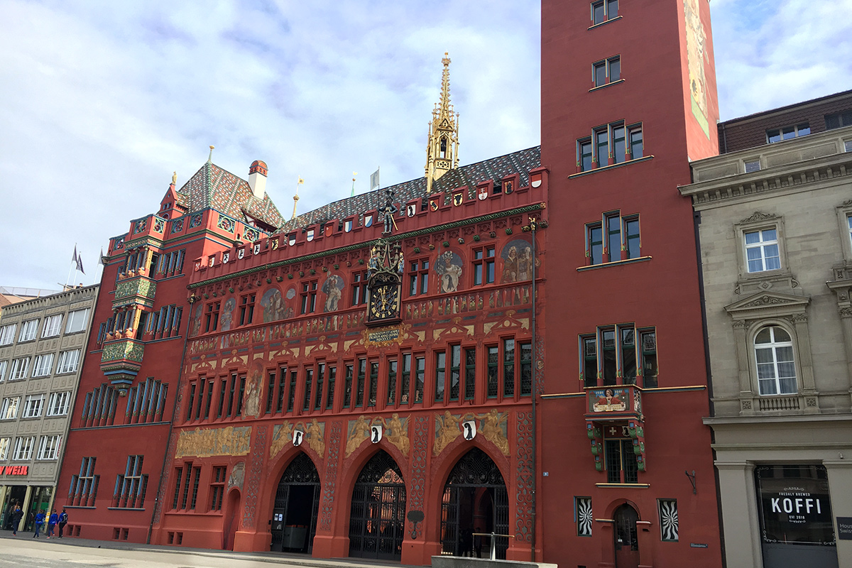 Baselin raatihuone, Rathaus, on yksi vanhan kaupungin mielenkiintoisemmista rakennuksista ja sijaitsee keskeisellä paikalla Marktplatzilla. Sen tunnistaa heti kirkkaanpunaisesta julkisivusta, jota koristavat yksityiskohtaiset maalaukset, kultaukset ja koristeelliset kuviot. Rakennus on peräisin pääosin 1500-luvulta ja se toimii yhä Baselin hallinnon keskuksena.