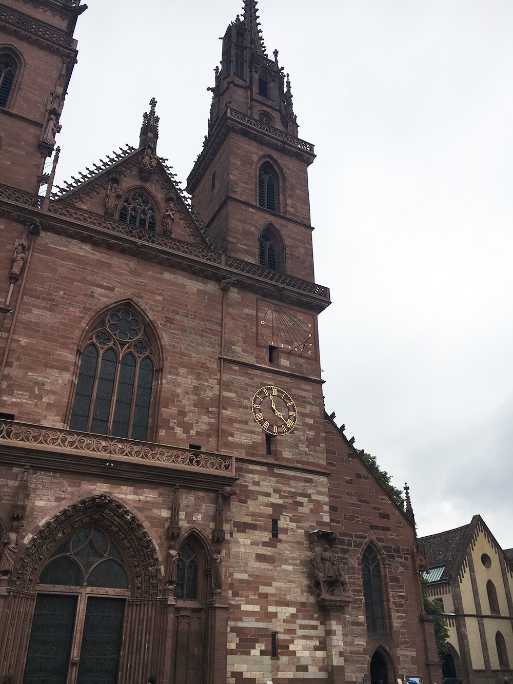 Basler Münster eli Baselin katedraali kohoaa näyttävästi vanhan kaupungin yläpuolella. Punertavasta hiekkakivestä rakennettu kirkko erottuu kaksine torneineen ja värikkäästi kuvioituine kattotiilineen. Kirkon torneihin on myös mahdollista kiivetä, ja ylhäältä avautuvat upeat näkymät yli kaupungin sekä jopa naapurimaihin Ranskaan ja Saksaan.