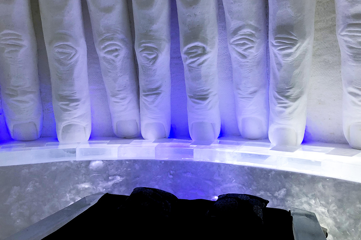 Ylläsjärveltä noin 15 minuuttia Levin suuntaan kohoaa joka talvi jotain ainutlaatuista, Lapland Hotels SnowVillage, joka kannattaa lisätä matkasuunnitelmaan. SnowVillage on elämys, joka vie keskelle taidetta ja talven taikaa. Kokonaan jäästä ja lumesta rakennettu kylä nousee Lainioon joka talvi uudella teemalla ja jokainen käyntikerta on erilainen. Vierailijat voivat kulkea jääkäytävien läpi, ihastella taidokkaita jääveistoksia ja teemallisia huoneita sekä pysähtyä hetkeksi jääbaarin tunnelmaan. Halutessaan voi myös yöpyä jääsviitissä – kokemus, joka todella jää mieleen. Alueella toimii lisäksi kahvila, jossa on mukava hengähtää ennen paluuta ulkoiluun tai tunturiin. SnowVillage tekee vaikutuksen niin mittakaavallaan kuin yksityiskohtaisella käsityöllä, vastaavaa ei helposti löydy muualta.