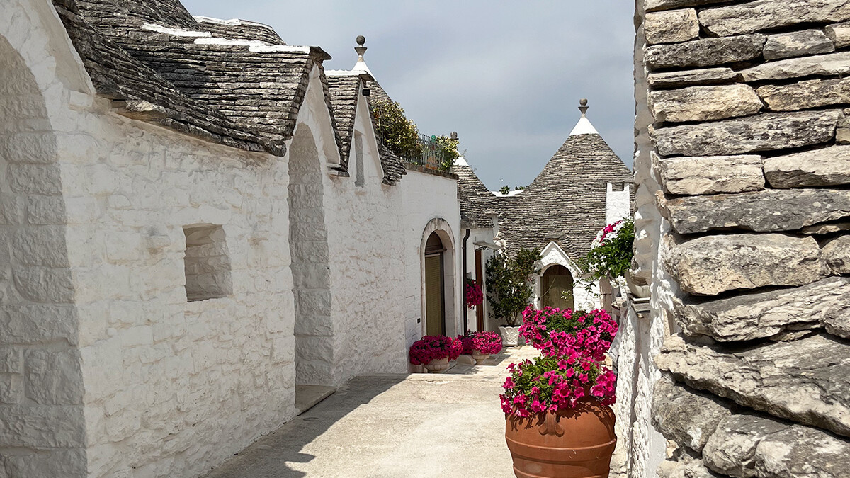 Alberobello on Puglian tunnetuin matkakohde. Sen ainutlaatuiset trullitalot tekevät kylästä täysin omanlaisensa. Nämä valkoiset rakennukset, joissa on tunnusomainen kartionmuotoinen kivikatto, ovat osa alueen pitkää rakennusperinnettä. Alun perin ne rakennettiin ilman laastia, jotta ne olisi voitu purkaa nopeasti verotarkastuksia vältellen. Nykyisin trullit ovat suojeltuja ja koko Alberobellon trullialue on Unescon maailmanperintökohde.